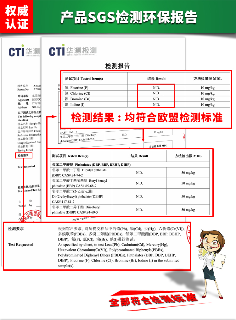 產品符合ROHS,通過SVHC環保測試要求